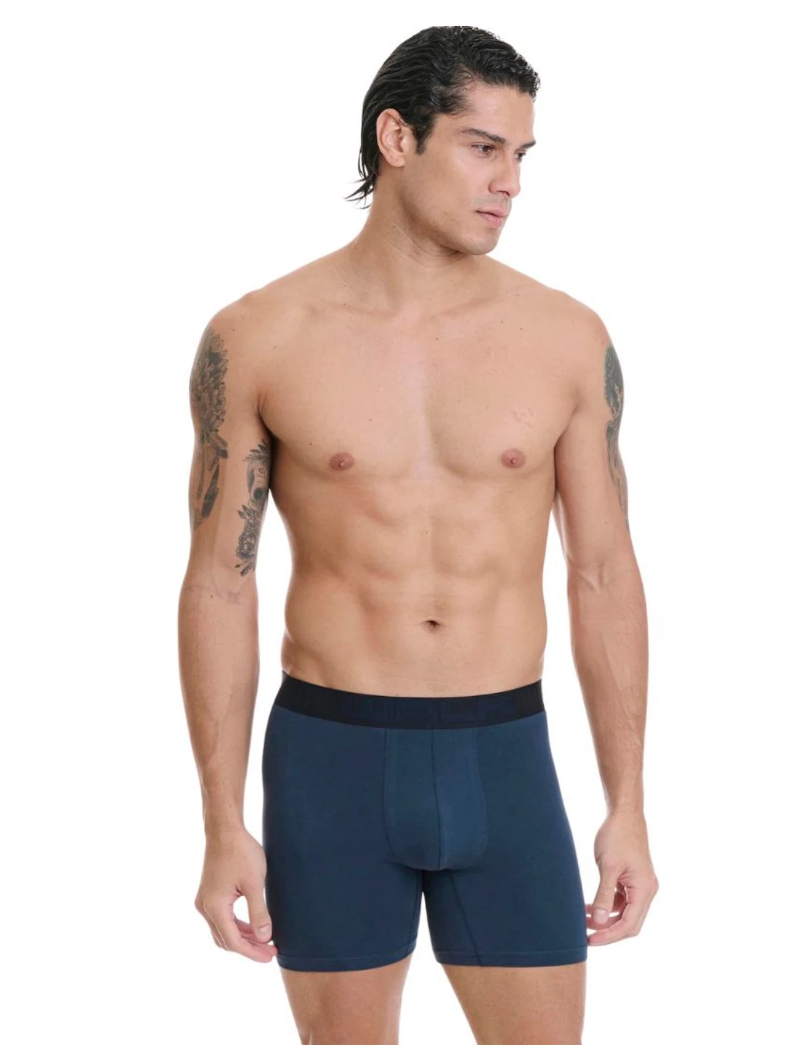 Ανδρικά μποοξεράκια με μακρύ πόδι από ελαστικό βαμβακερό ύφασμα σε συσκευασία δύο τεμαχίων. Προσφέρουν τέλεια εφαρμογή, άνεση και ανθεκτικότητα. Ιδανικά για καθημερινή χρήση καθώς και για έντονη αθλητική δραστηριότητα.