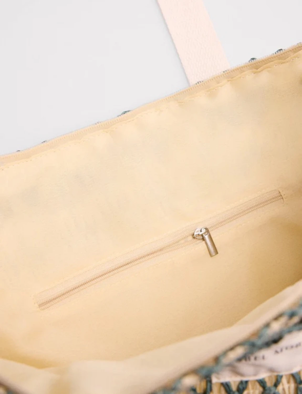 Ψάθινη τσάντα θαλάσσης. Ευρύχωρη και ελαφριά, με σχέδιο εμπνευσμένο από τη φύση, είναι ιδανική για να μεταφέρετε όλα τα απαραίτητα του καλοκαιριού.