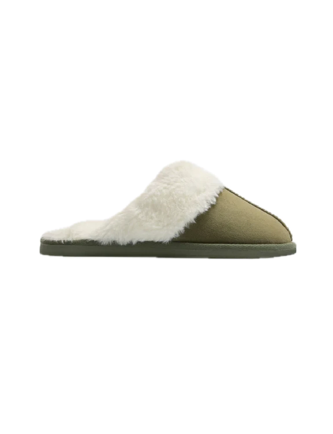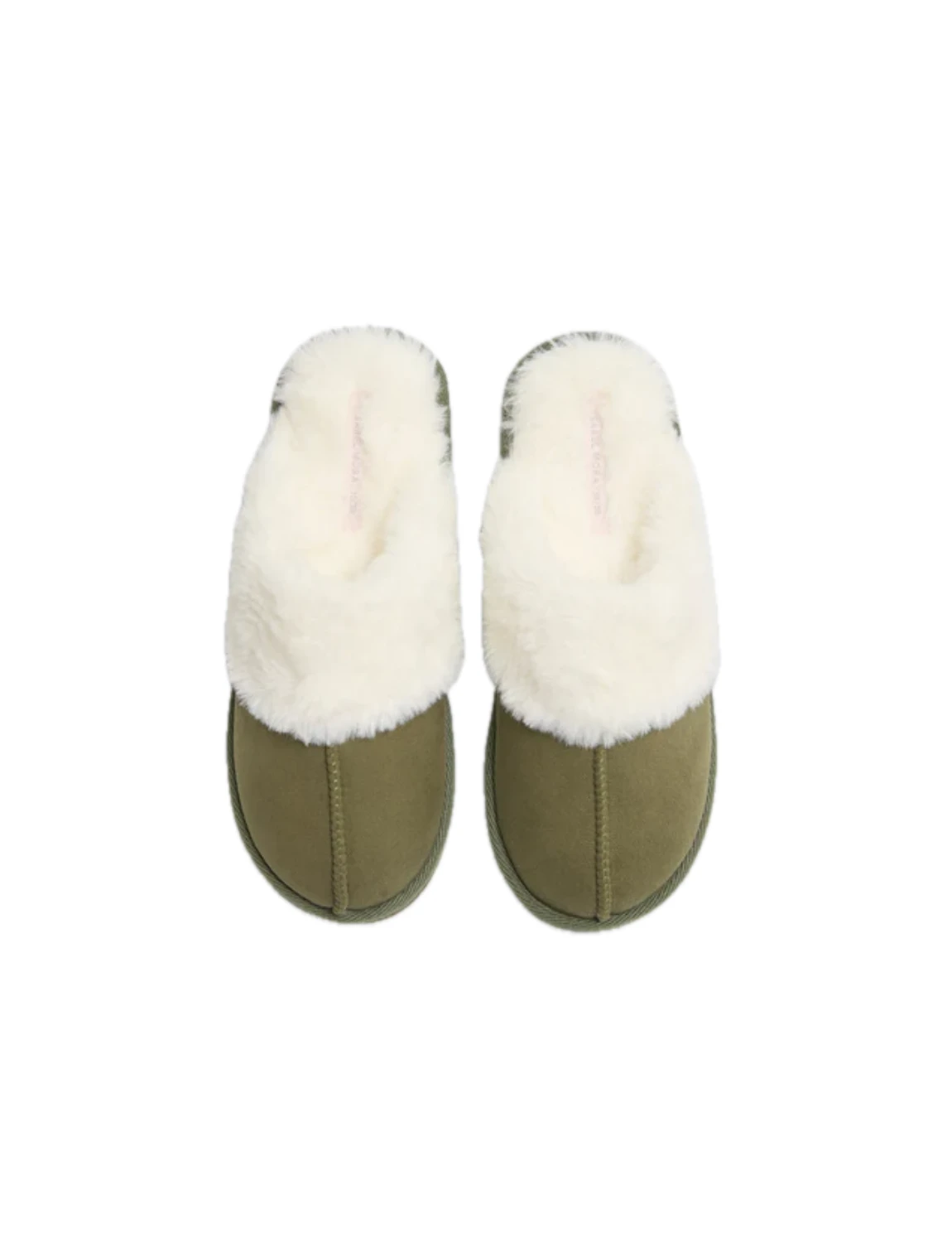 Παντόφλες με άνετο και ζεστό σχεδιασμό, ιδανικές για να κρατούν τα πόδια σας ζεστά τις κρύες μέρες. Κατασκευασμένες με απαλό σουέτ εξωτερικά και γούνινη εσωτερική επένδυση, προσφέρουν άνετη και απαλή αίσθηση στο περπάτημα. Το γούνινο τελείωμα στο πάνω μέρος προσθέτει μια κομψή και ζεστή πινελιά.