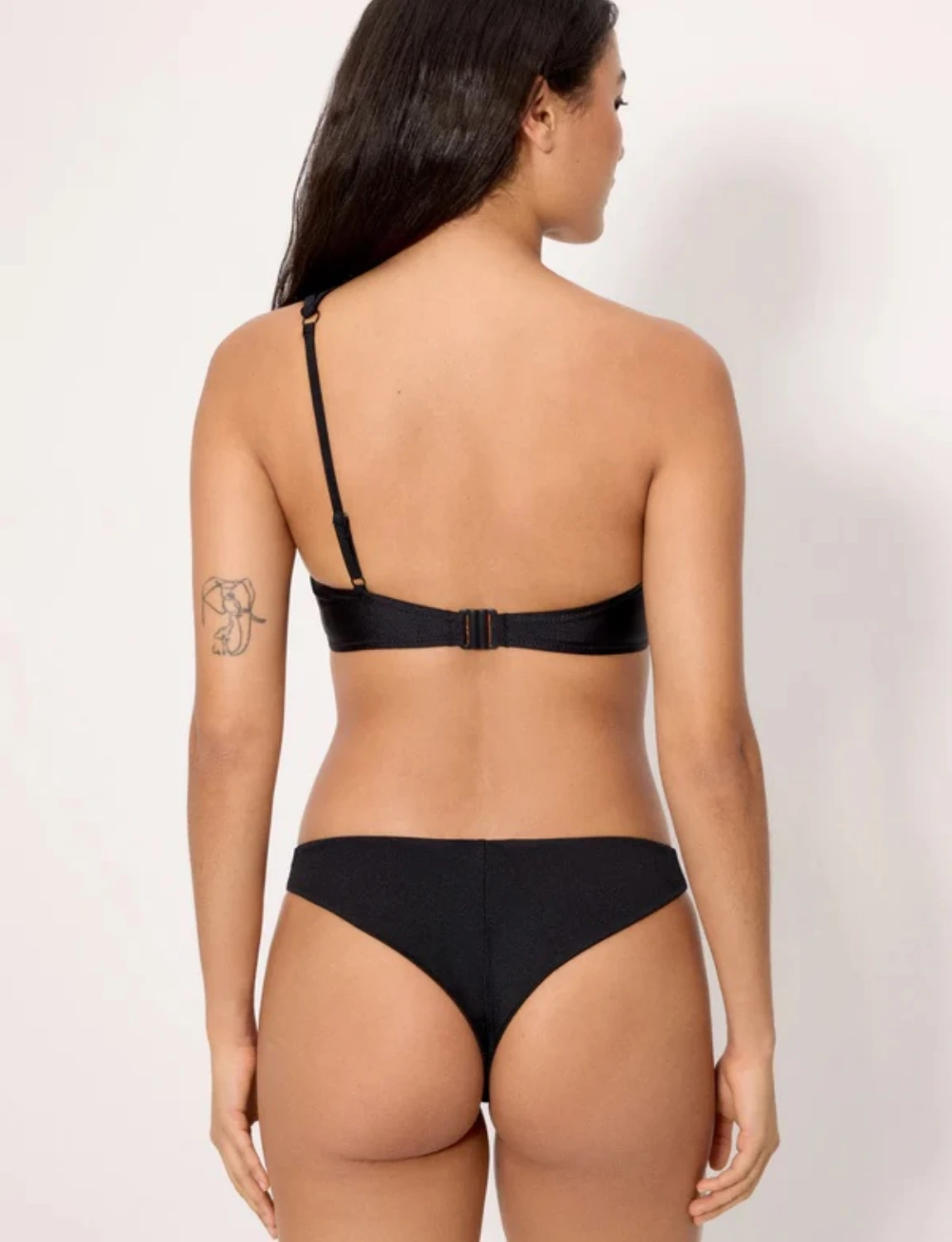Γυναικείο μπικίνι σετ. Τοπ με έναν ώμο, κόψιμο στο στήθος, ρυθμιζόμενη τιράντα και αφαιρούμενη ενίσχυση. Σλιπ με brazil κόψιμο. Λαμπερό φινίρισμα. Ιδανικό για μια άνετη καλοκαιρινή εμφάνιση.