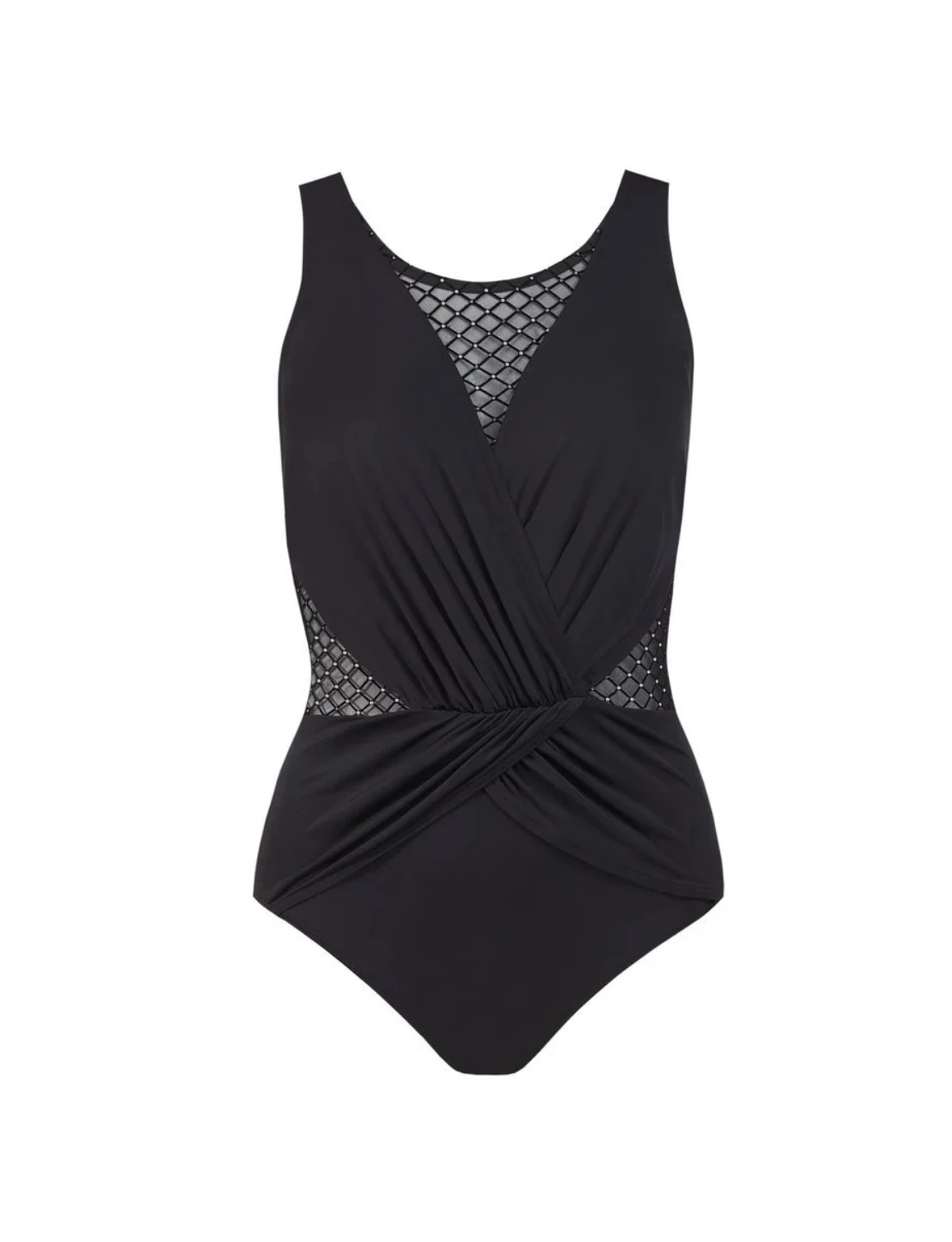 Αναδείξτε τη σιλουέτα σας με αυτό το κομψό ολόσωμο. Σχεδιασμένο για να προσφέρει τέλεια εφαρμογή και μοντέρνο στυλ, αποτελεί την ιδανική επιλογή για την παραλία ή την πισίνα. Διαθέτει διαφανή γεωμετρικά ένθετα που δημιουργούν ένα εφέ “κλεψύδρας”, λεπταίνοντας οπτικά τη μέση και ενσωματωμένα ενισχυμένα cups και λάστιχο κάτω από το στήθος που εξασφαλίζουν σταθερότητα και άνεση, ακόμη και σε μεγαλύτερα μεγέθη.